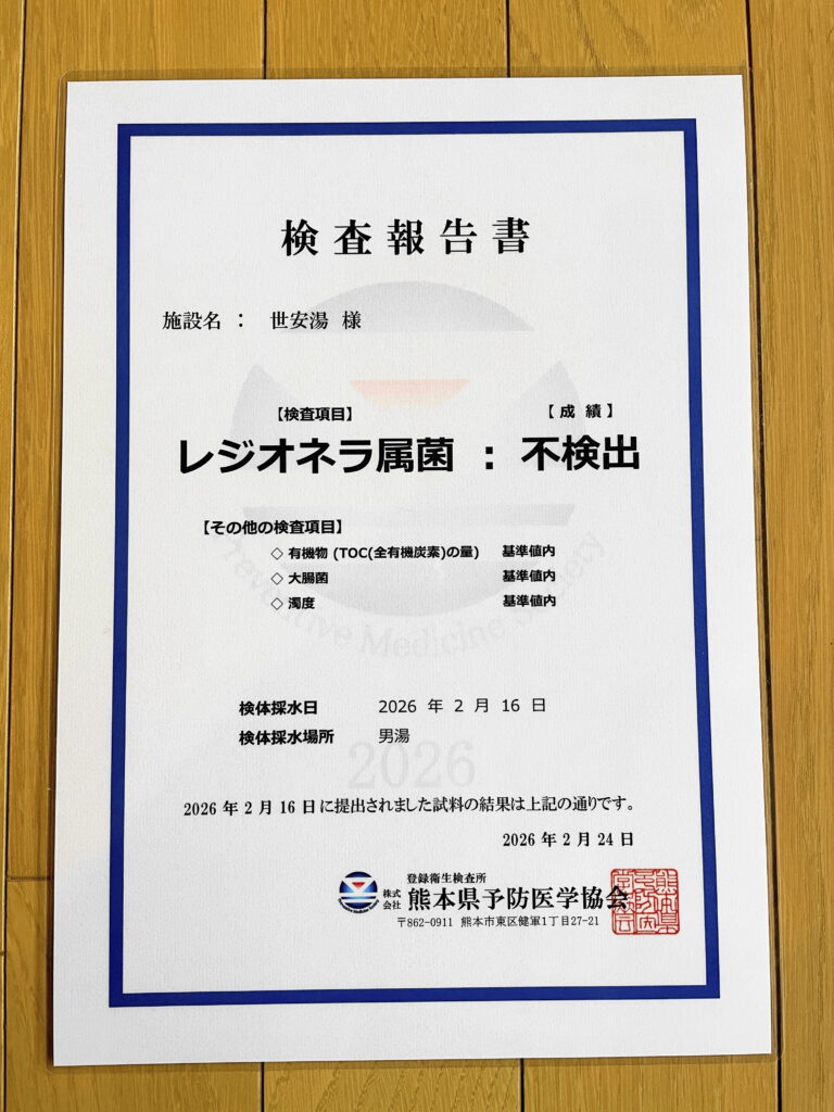 あなたが、浴場施設を 利用する時、必ず 検査報告書を 確認することを お勧めします。